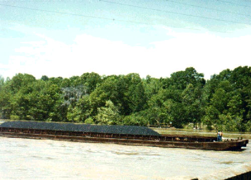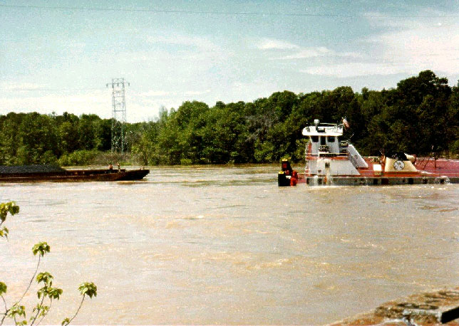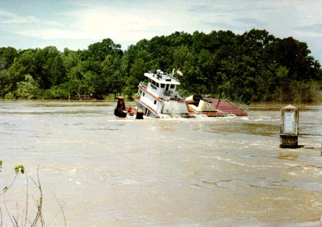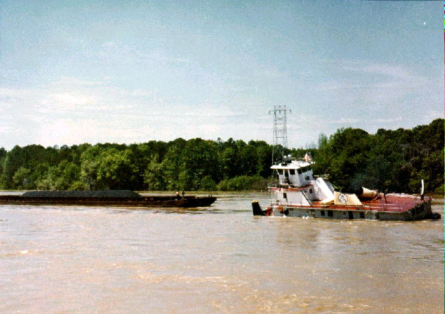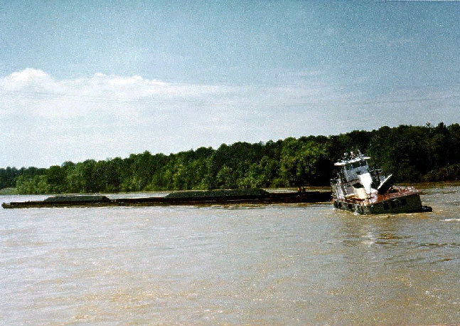 Notice the propwash at the rear of the tug. The boat is upright and back